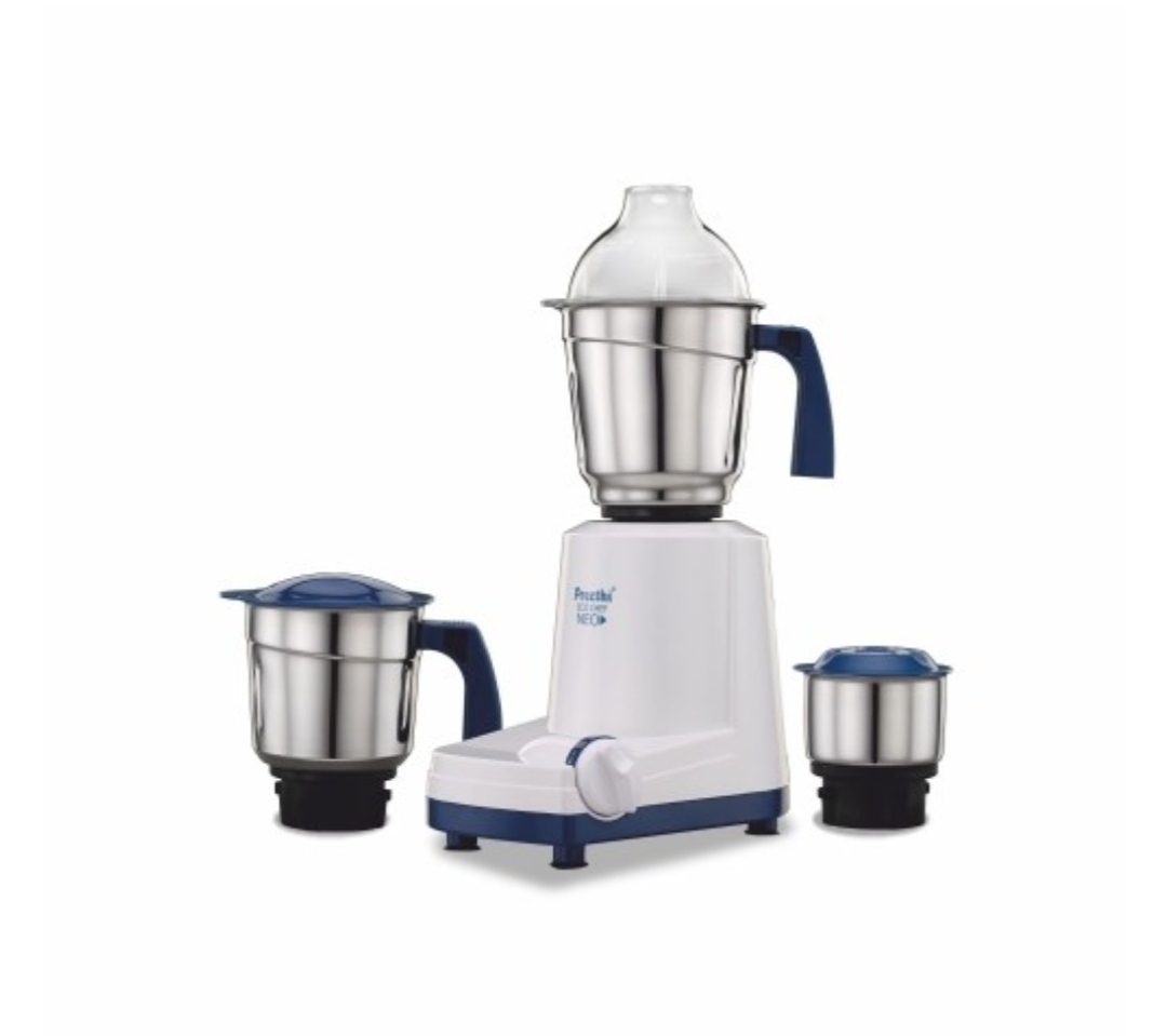 If you are looking for an efficient mixer grinder, then it has to be Preethi MG - 199 Eco-Chef Neo Mixer Grinder. It will save a lot of your precious time you spend in kitchen chopping vegetables and grinding. It has high performance 500 watt motor for effective grinding. The jars are made of 100 percent stainless steel with flow breakers for fine grinding. Whatever you want to grind, the Preethi Mixer Grinder will do that for you as it is endowed with machine ground and polished Steel Blades that offer optimal grinding efficiency.